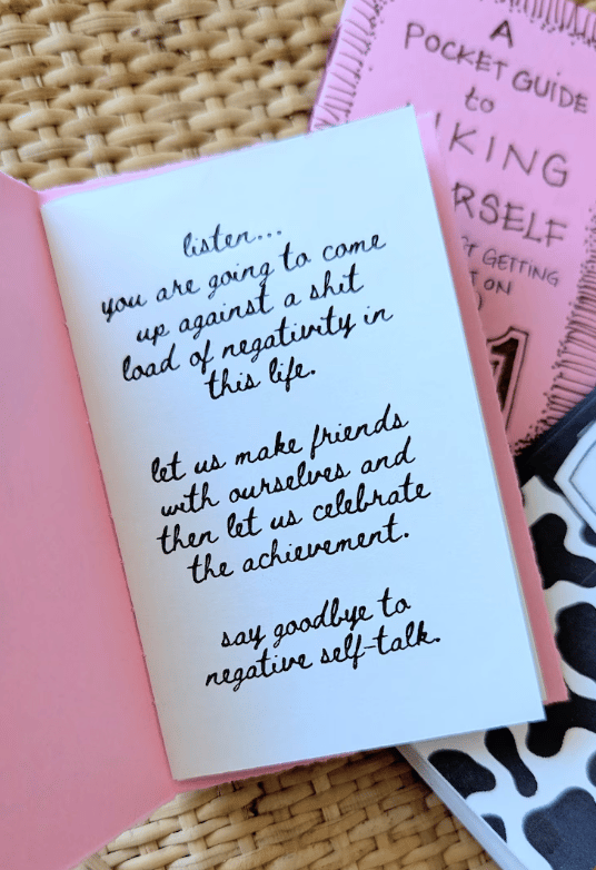 I first did this little exercise myself as therapy homework. It really pulled me out of a low place with my mental health, so I wanted to create something fun and interactive that would also help you if you're feeling down about yourself. Grab a pen (and a pal) and wait by the mailbox for this unique zine pack that promises to inspire and uplift.