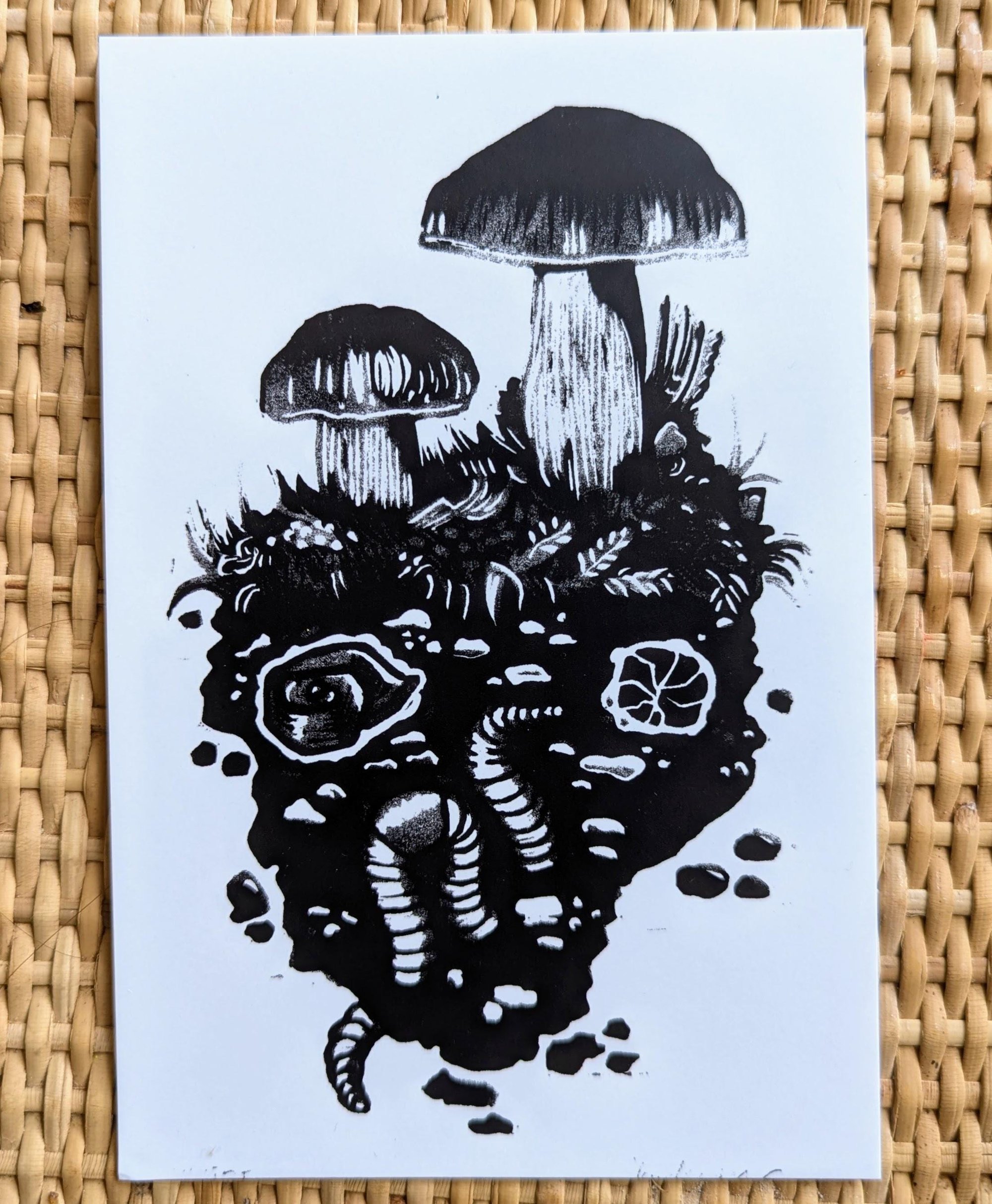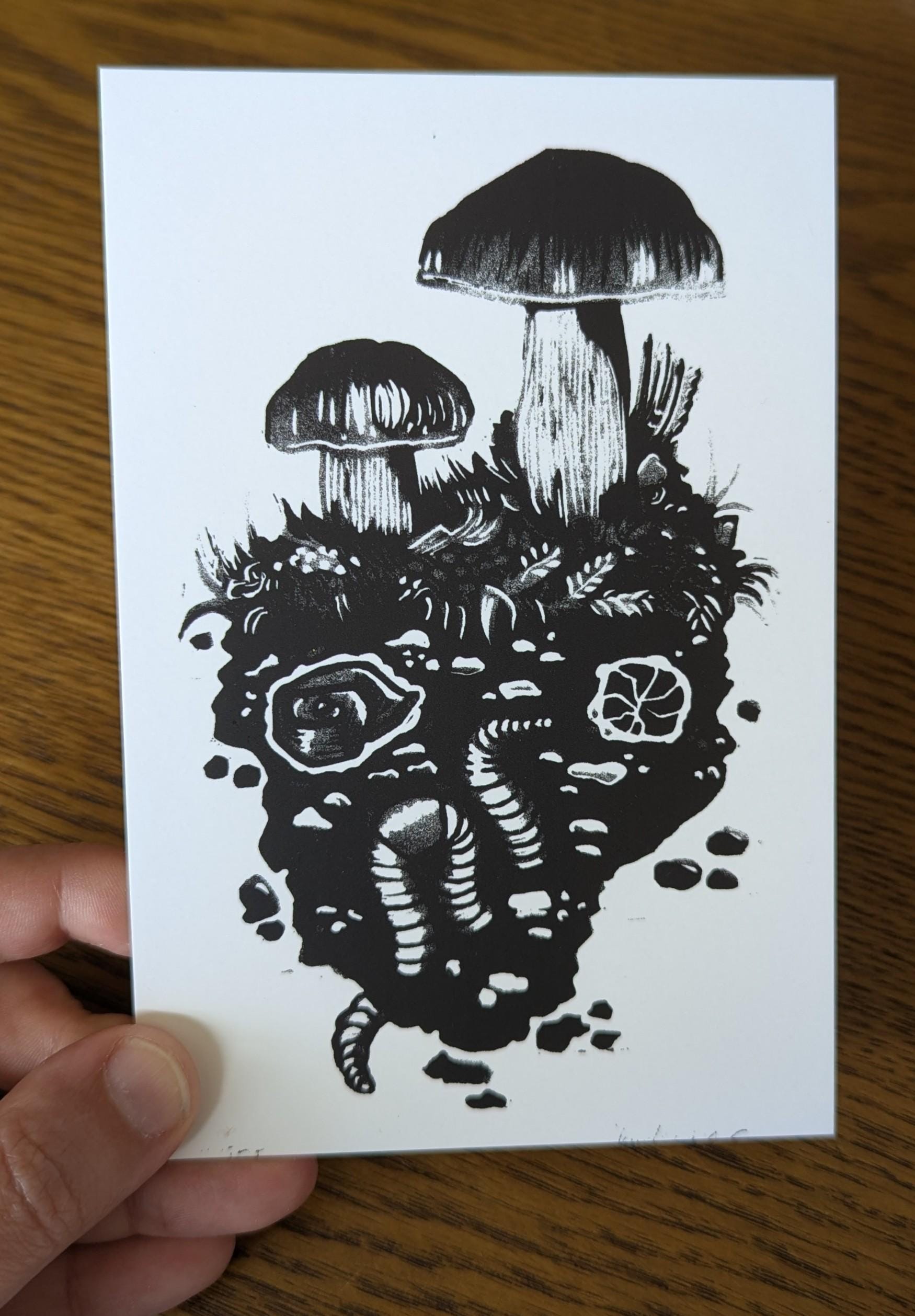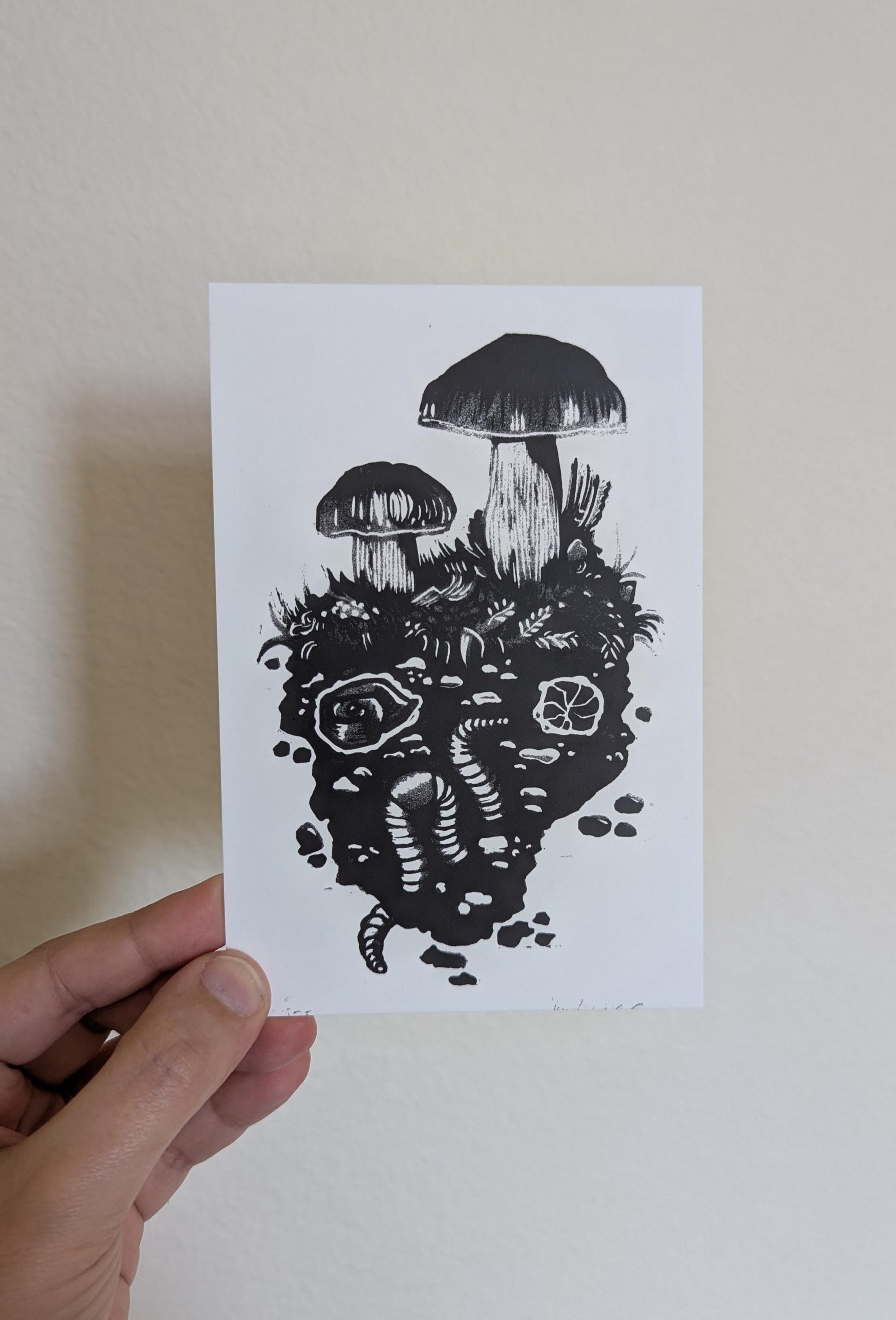 Mushroom Woodcut Art Mini Print Postcards Unique Stationery Staples